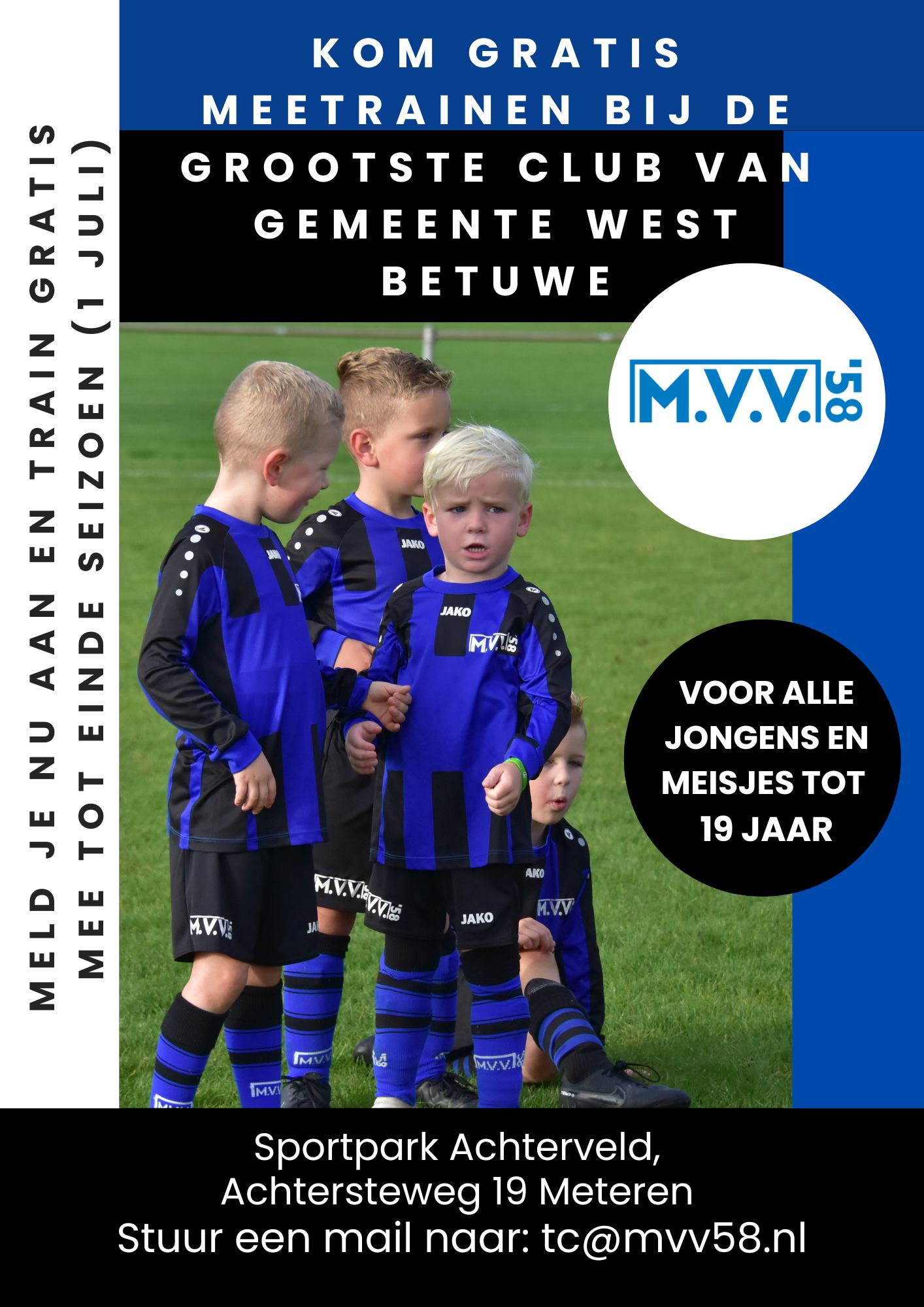 Alle jongens en meisjes die nu aanmelden als lid, mogen tot einde van dit seizoen (1 juli) GRATIS meetrainen.